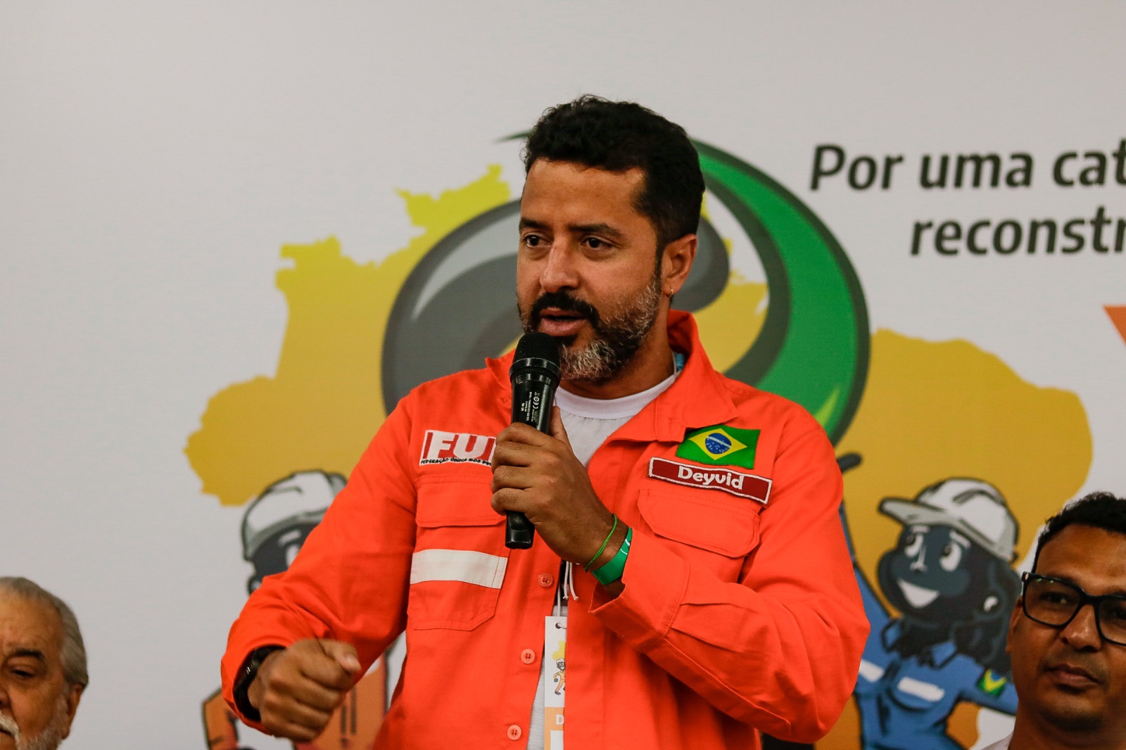Luciana Tavares, representante da CTB-BA, falou da força da classe trabalhadora e da responsabilidade dos petroleiros na luta pela reconstrução do pais. A representante da CUT nacional, Nadilene Nascimento, falou que a classe trabalhadora experimentou “como é difícil quando nos tiram as conquistas” e da necessidade de disputar cada centímetro em uma construção coletiva para que o Brasil possa se reerguer.