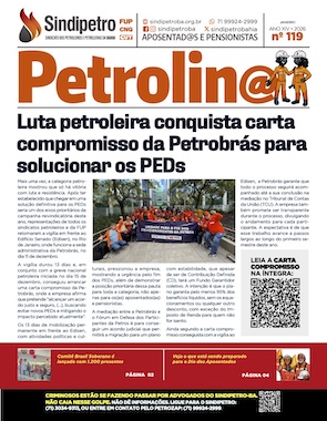 O jornal Petrolino nº 119 (janeiro de 2026) destaca a mobilização da categoria petroleira que resultou na conquista de uma carta-compromisso da Petrobrás para buscar uma solução aos Planos de Equacionamento de Déficit (PEDs). A vigília de 13 dias em frente ao Edifício Senado (Edisen), somada à greve nacional iniciada em 15 de dezembro, pressionou a empresa a assumir o compromisso de negociar um acordo considerado justo e seguro, com o objetivo de evitar novos PEDs e mitigar os impactos atuais. A proposta em mediação prevê a migração para um plano com fundo garantidor coletivo, assegurando ao menos 95% dos benefícios líquidos, com acompanhamento pelo Tribunal de Contas da União e promessa de transparência durante todo o processo.